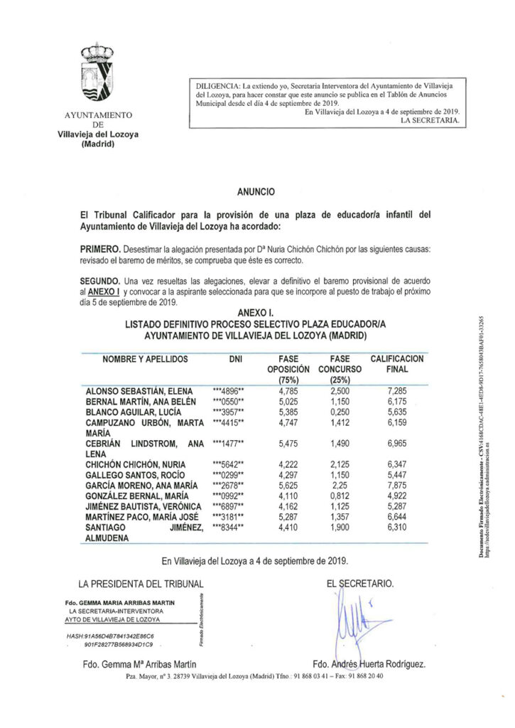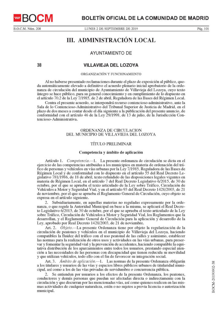 Aprobada por el Pleno del Ayuntamiento el 27 de septiembre de 2019