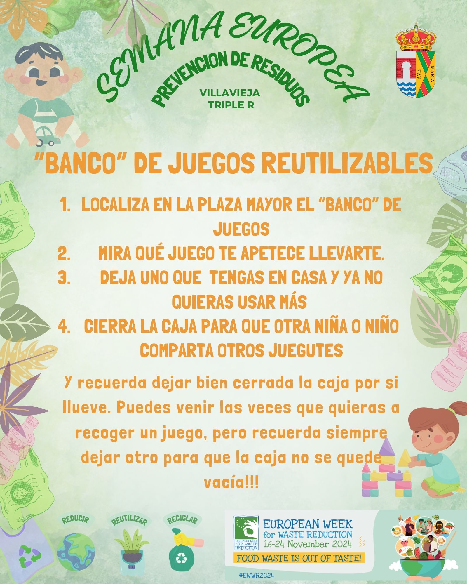 Con este “banco” de juegos queremos sensibilizar sobre la reducción del consumo y la reutilización de materiales…Y queremos hacerlo jugando, que es como mejor se aprende.