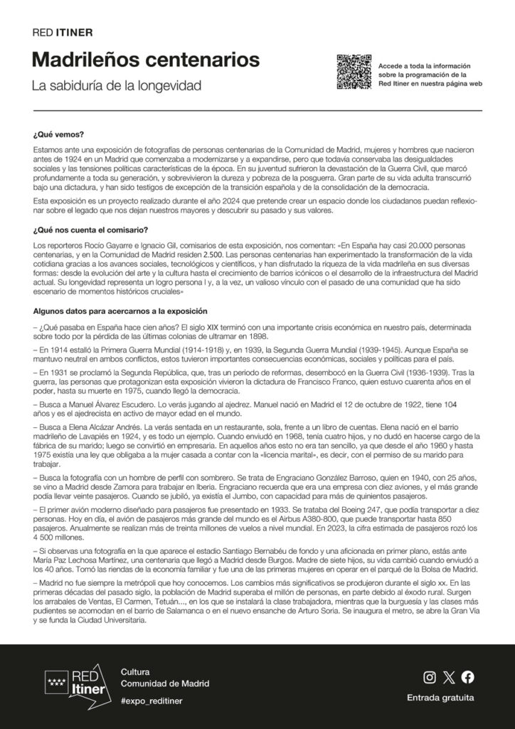 EXPOSICIÓN RED ITININER. “Madrileños centenarios. La sabiduría de la longevidad”