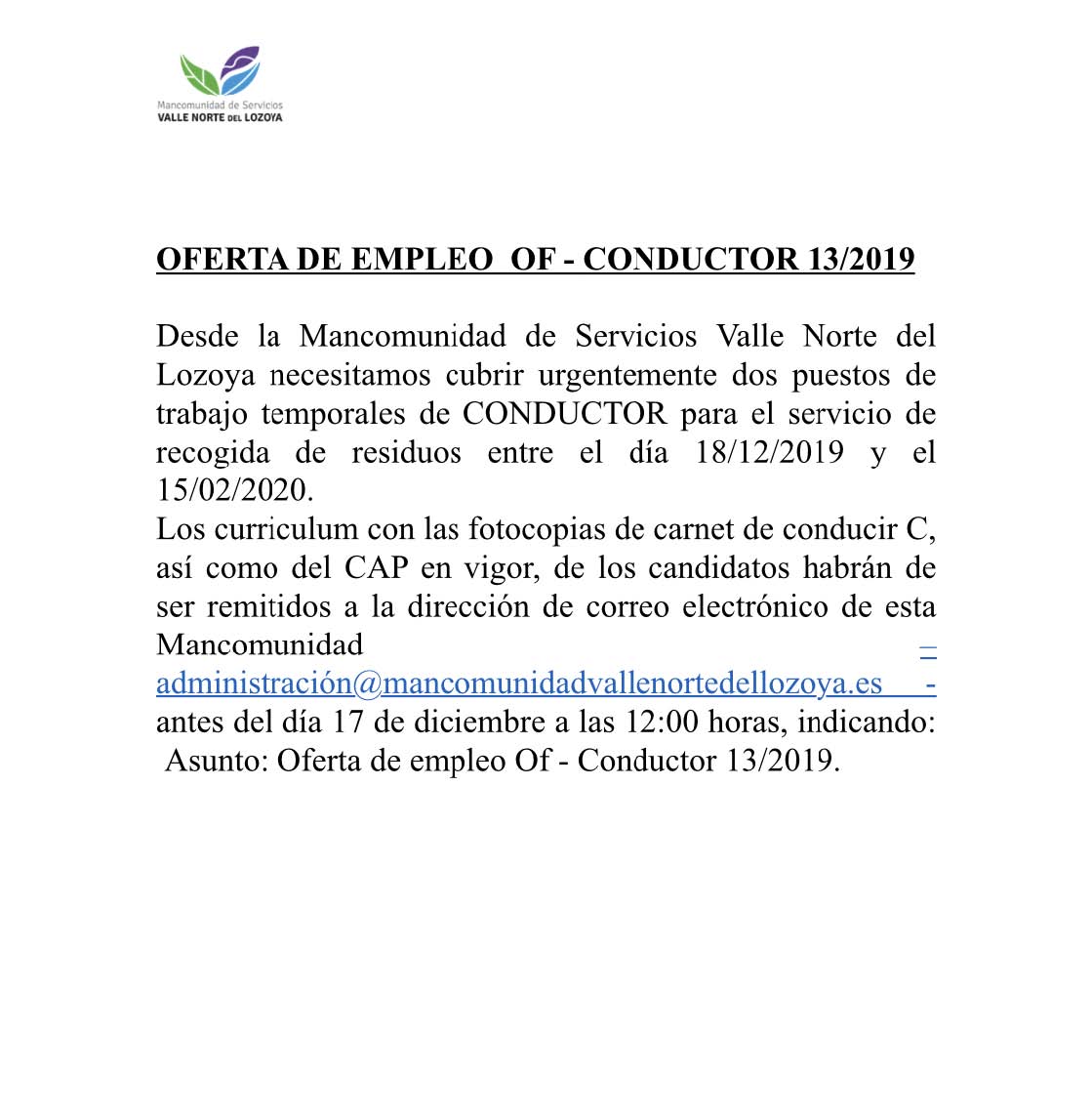 La Mancomunidad de Servicios Valle Norte del Lozoya necesita cubrir urgentemente varios puestos temporales durante los últimos días de diciembre y los meses de enero y febrero de 2020