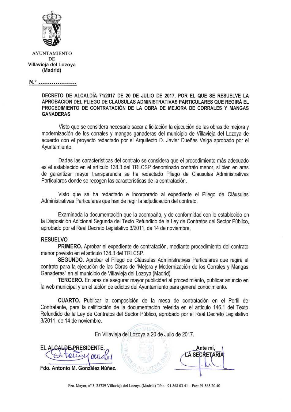 Publicado concurso Obras de “Mejora y Modernización de dos Corrales y Mangas Ganaderas” en el municipio de Villavieja del Lozoya (Madrid)
