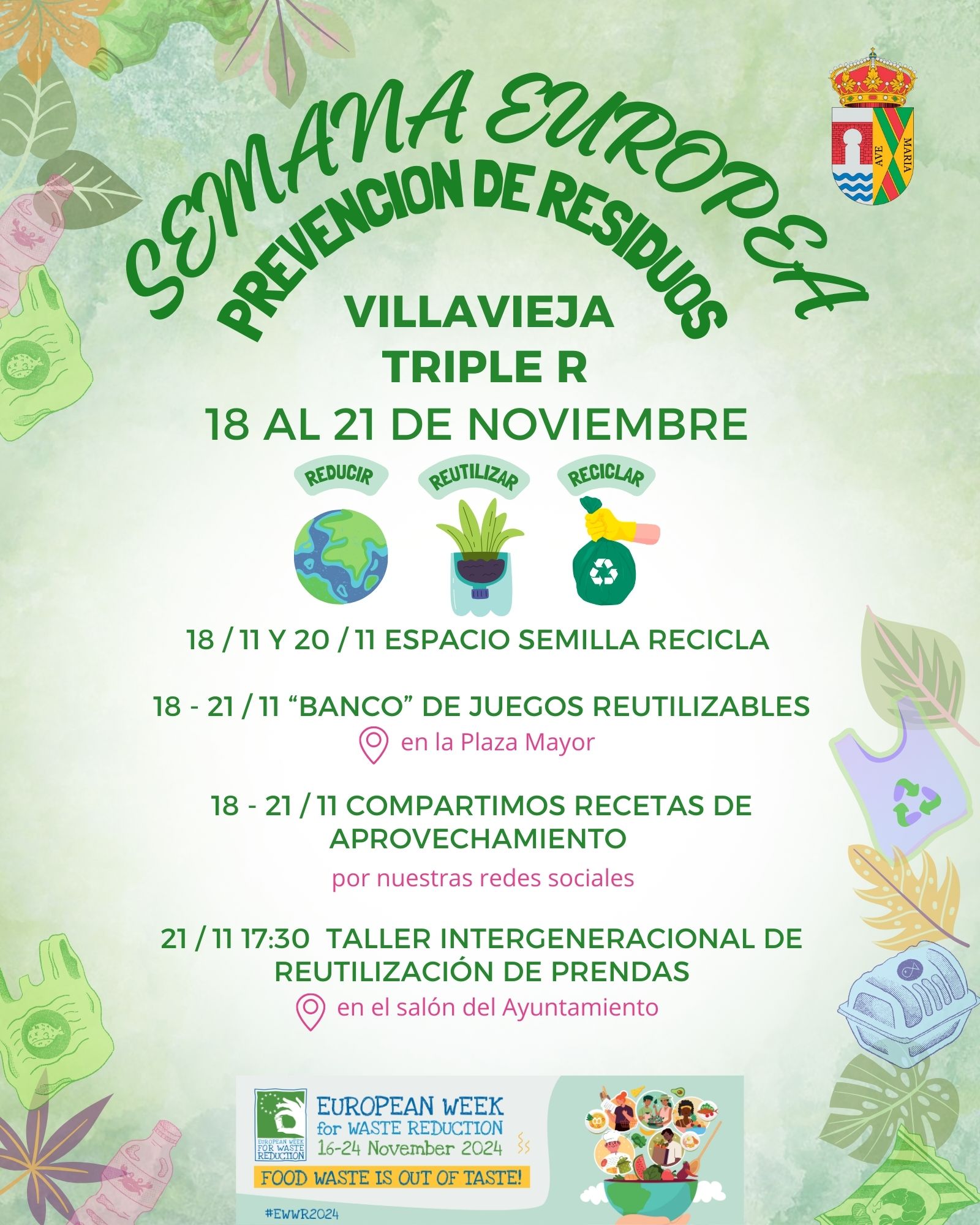 Entre los días 18 y 21 de noviembre, #Villavieja se une a la Semana Europea de la #Reducción de Residuos con acciones que sensibilizan sobre la importancia de la reducción del consumo, la reutilización de productos y materiales y el reciclaje de residuos.