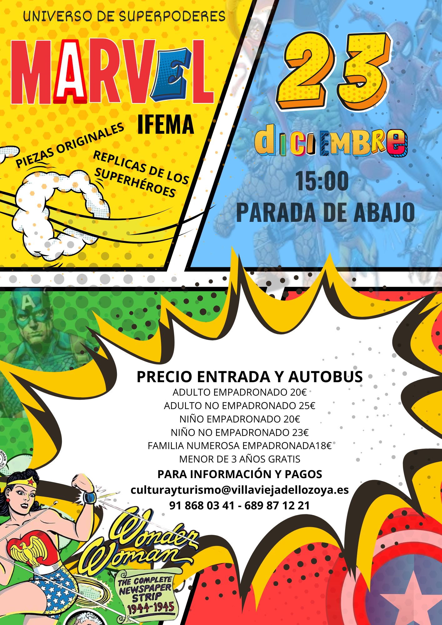 El próximo 23 de diciembre, a las 15:00 nos vamos de excursión a ver las piezas originales de las películas de Marvel y las réplicas originales de los héroes y las heroínas!!!!